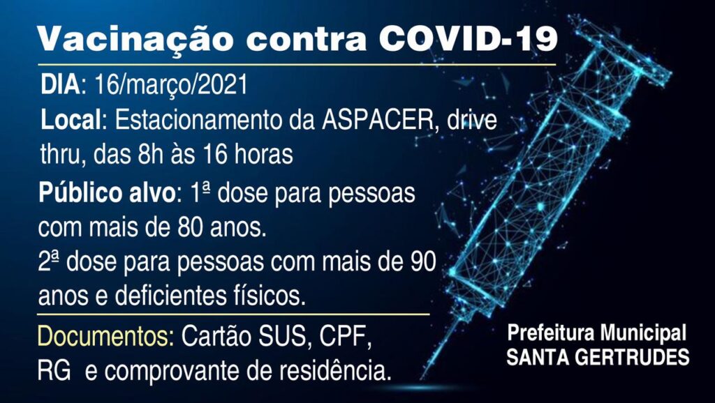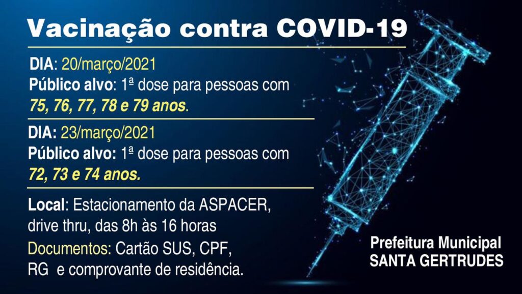 Dia 20 de Março SÁBADO será feito a vacinação contra a COVID-19 para quem tem 75, 76, 77, 78...